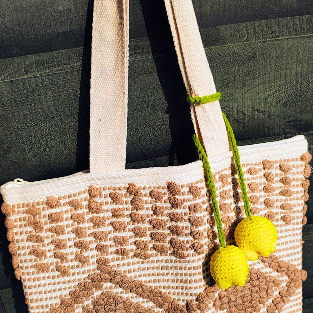 Organize and decorate your curtain in style with our hand-made crochet curtain tie-backs. Our artisans crochet yarn thread in gorgeous flower patterns to create these artisanal curtain tie-backs. This designer curtain tie-back will keep your curtain in place while giving your space a beautiful artistic vibe. These tie-back ropes can also be used as beautiful bag charms to accessorize and funk up your tote or satchels.