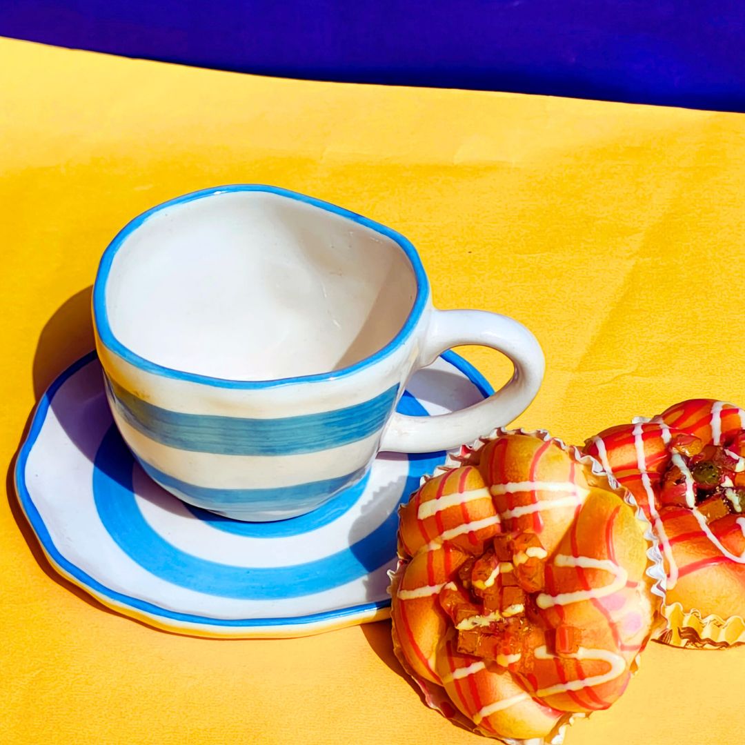Stylish and sturdy, this mug & saucer set is perfect for gifting, office use, or for daily use at home. Hand-painted and handmade by our artisans, this cute cup& saucer set is a heart stealer.