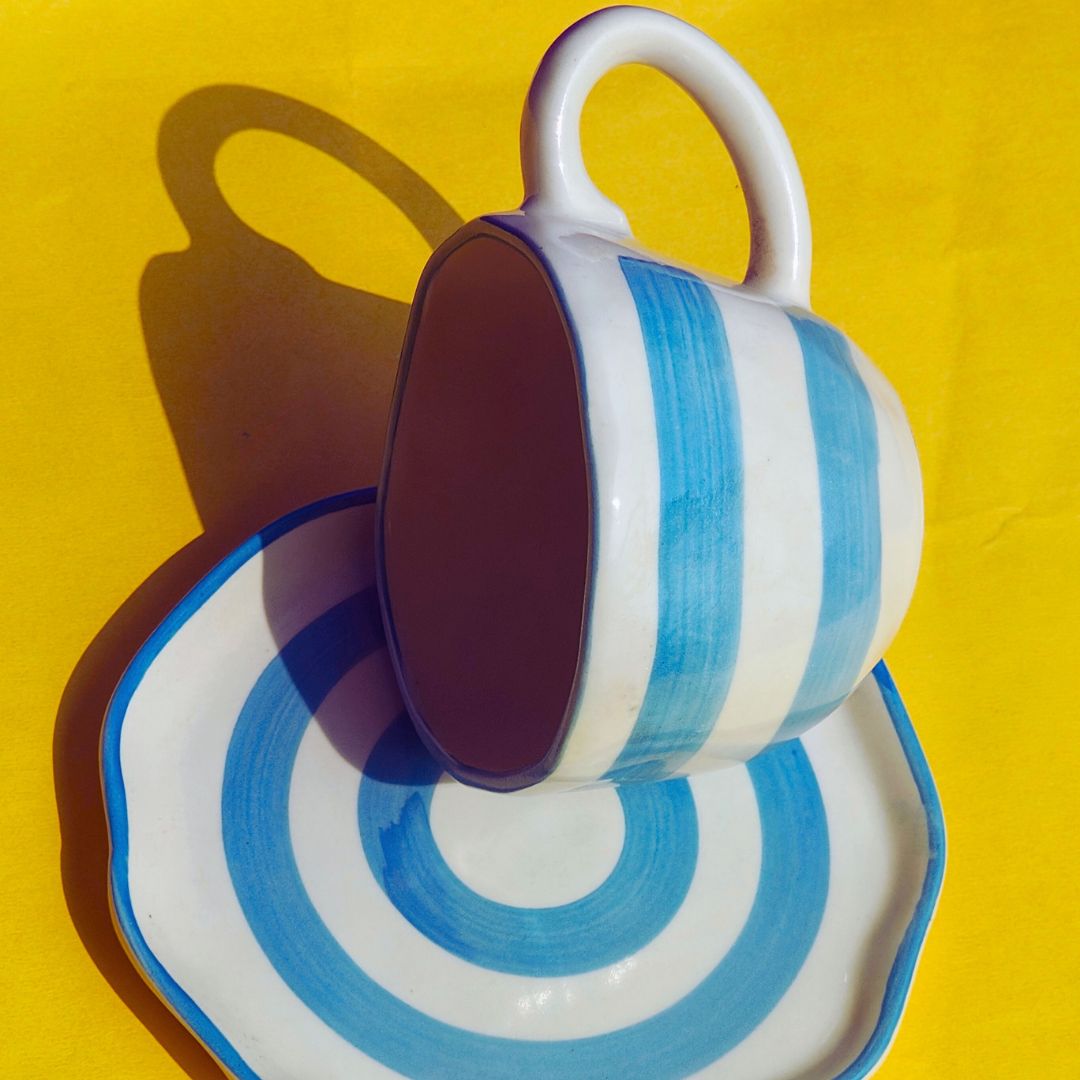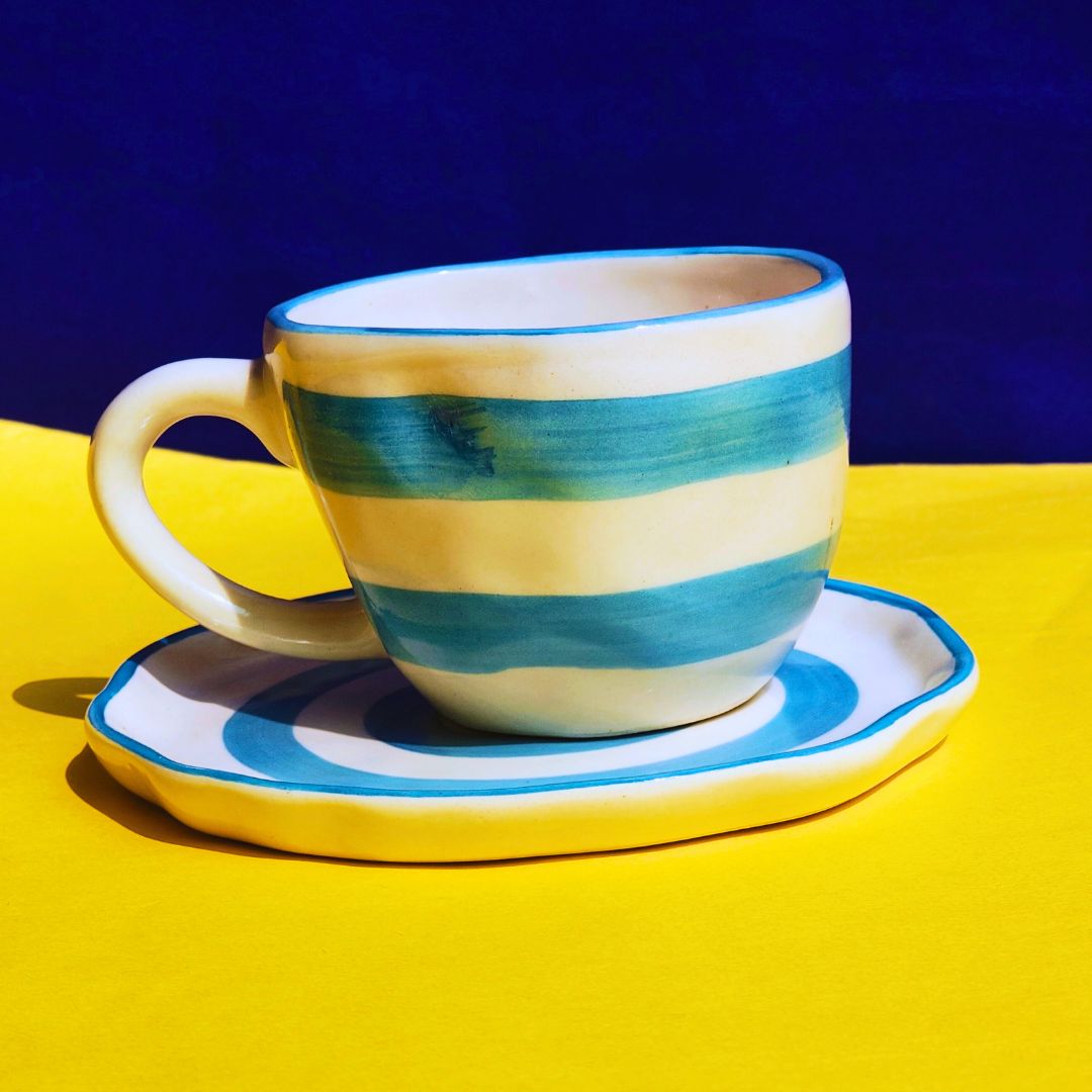 Elevate your morning routine with this adorable ceramic mug and saucer set, guaranteed to bring a smile to your face. Delicately crafted with charming designs and vibrant colors, each piece adds a whimsical touch to your coffee or tea time. The matching saucer provides a perfect resting spot for your mug, making it a delightful addition to any kitchen or tabletop.
