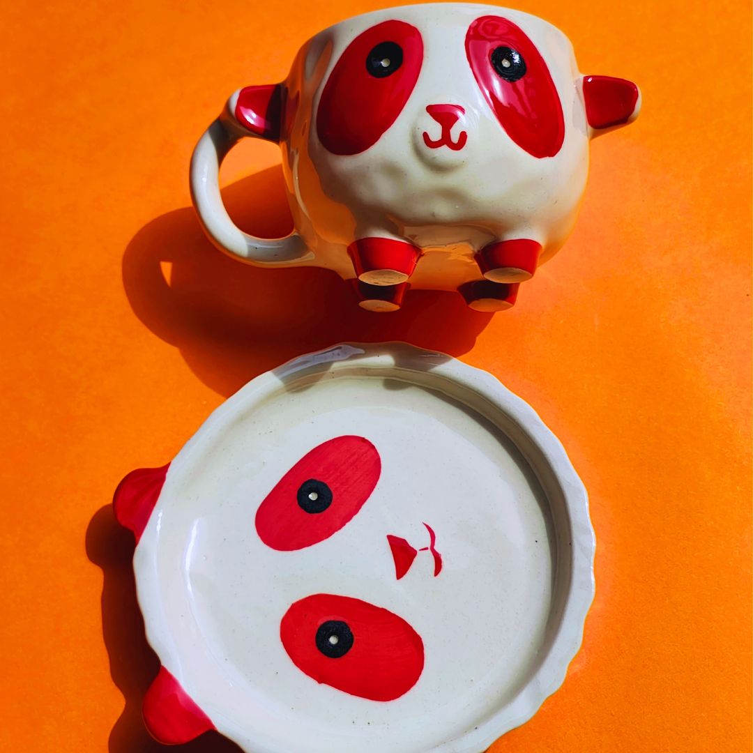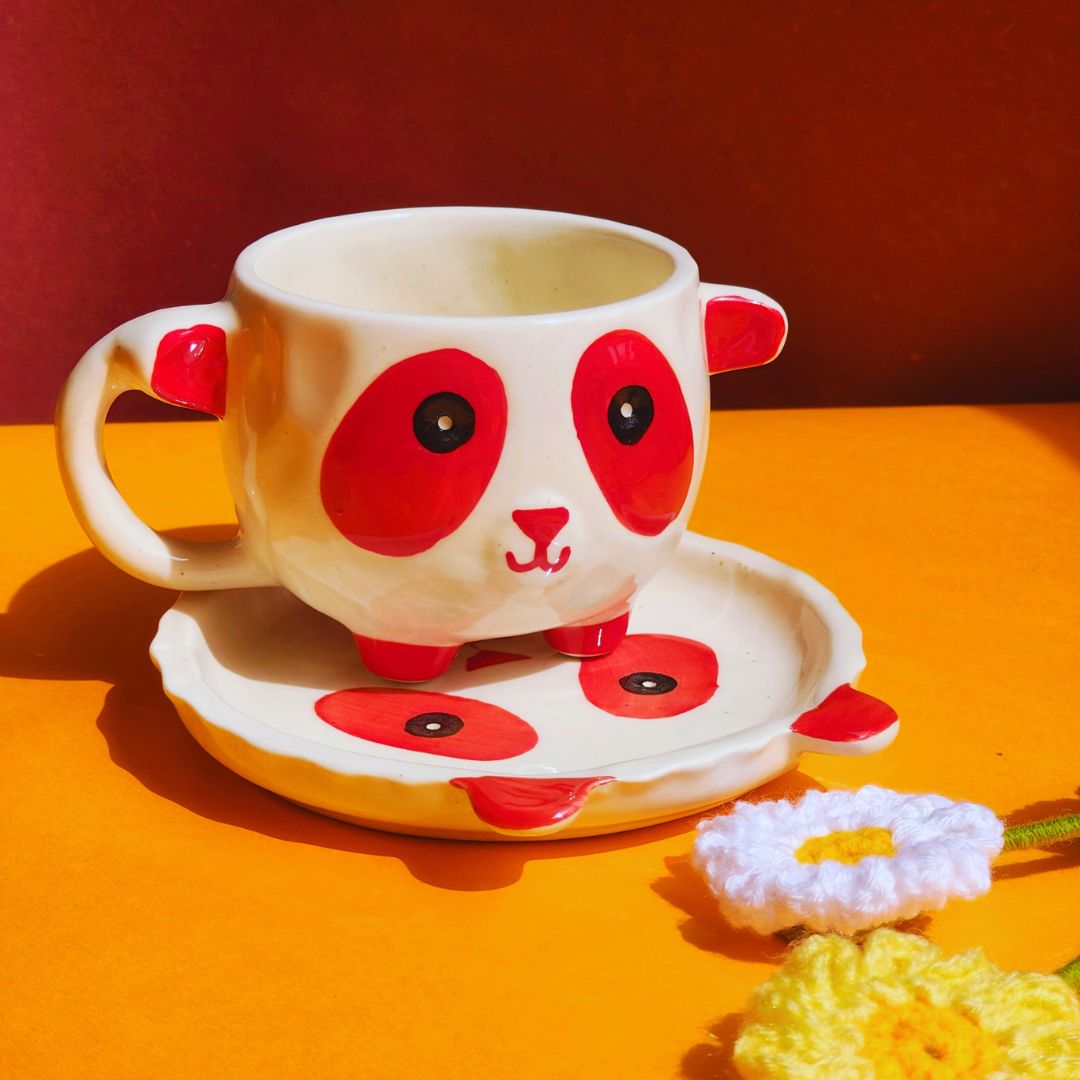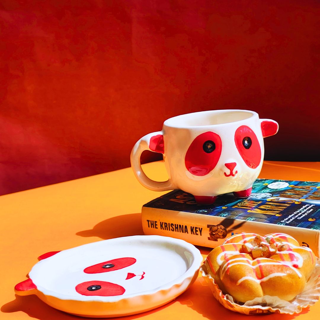Cute as a button our crowd favourite panda mug is here to steal your heart. These instgram ready mug comes with an eually adorable saucer to hold your cookies and biscuits or for simply using them for resting the mugs. Made of good quality ceramic these mugs are cute, sturdy and stylish. Ideal for gifting and collecting this mug is what we called mug mania