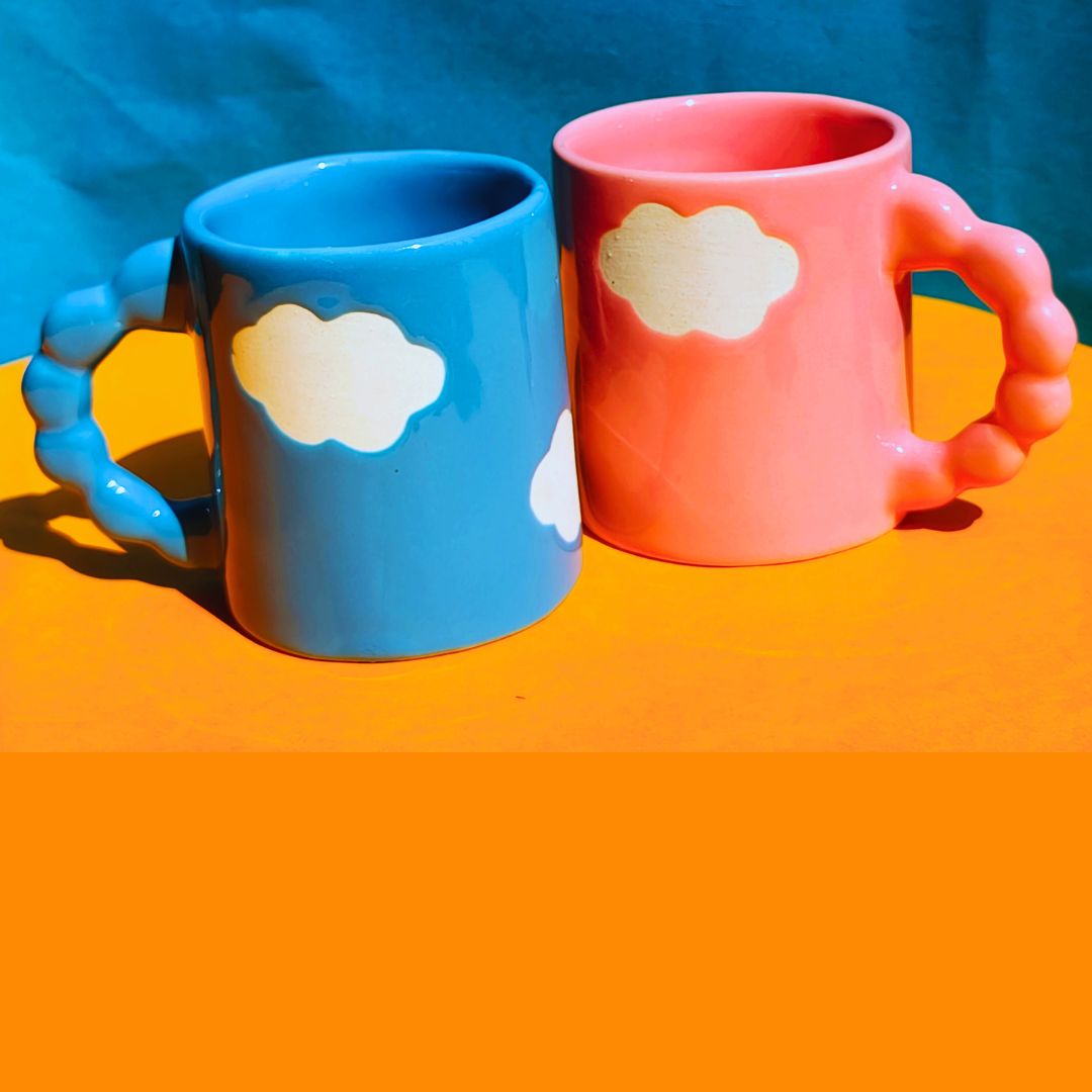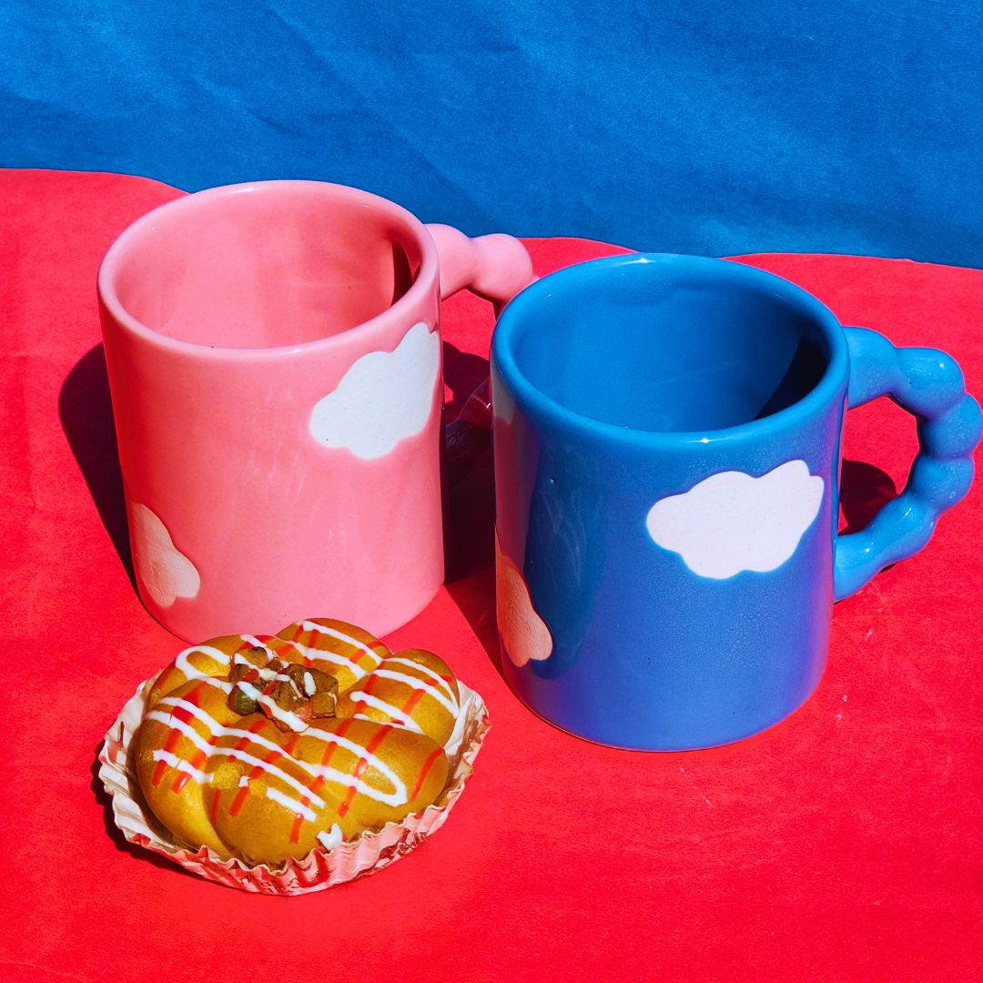 This mug features vibrant blue & pink base with hand embossed cloud patterns. Handcrafted and hand-glazed by our artisans, this mug is large enough to use as milk mug or to serve juice, cold coffee or for serving tea, coffee etc.. The Ergonomic handle makes it convenient to carry, use, and sip on your favourite beverage.