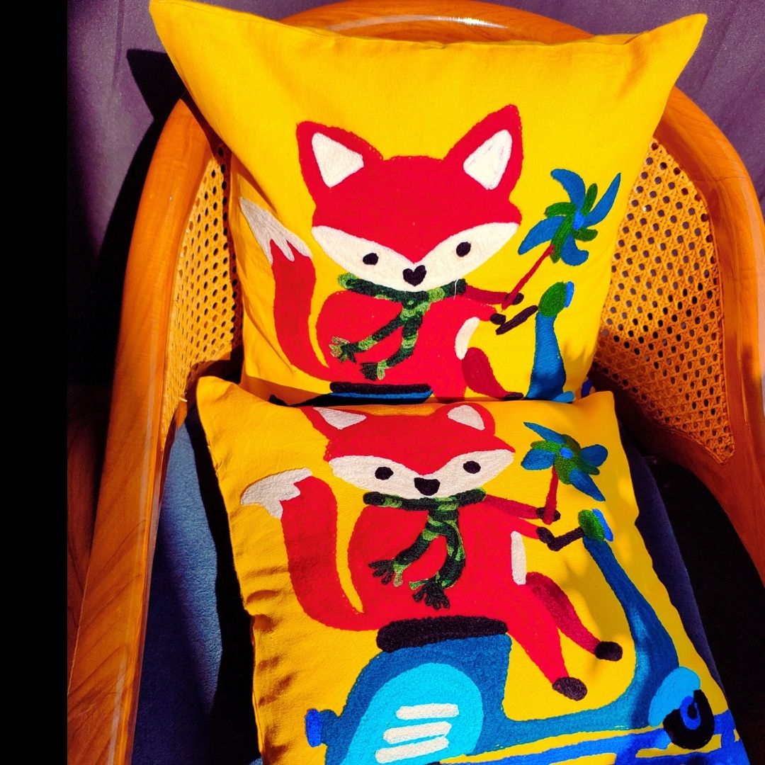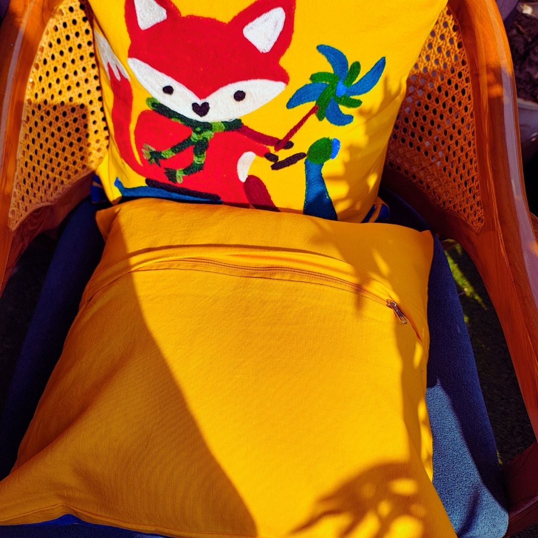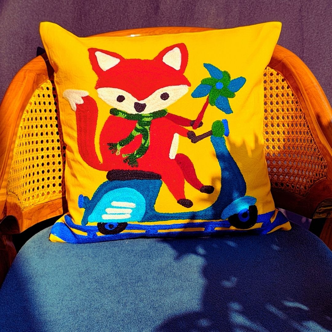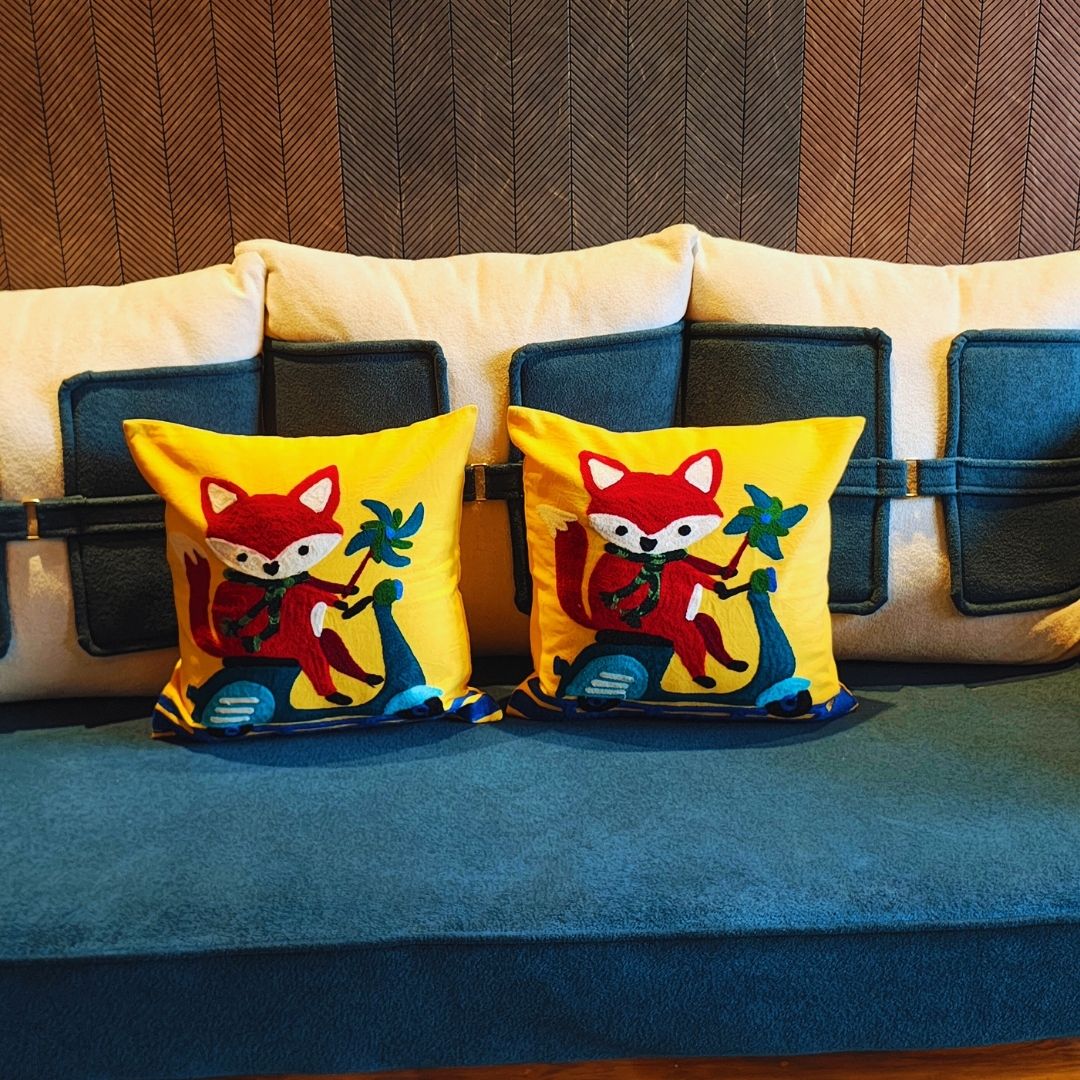Suzani hand embroidery on this handcrafted cotton cushion cover adds a touch of cultured elegance to any room in your house. The cute fox pattern and vibrant yellow colour give the combo a soothing and pleasant vibe.