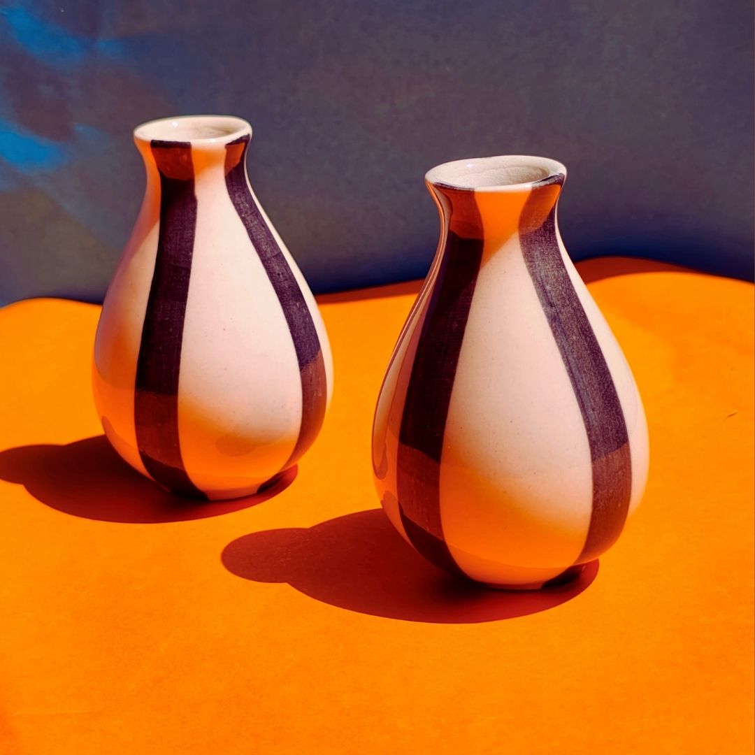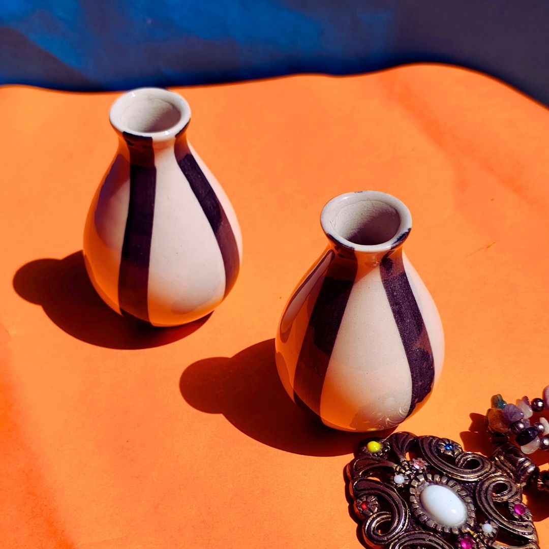 This beautiful set of two cute small vases is intended to add elegance to the dull areas of your home. Use them with or without flowers; this adorable set creates a lovely design element. Its gentle colour is pleasing to the eye and complements any room decor design style.