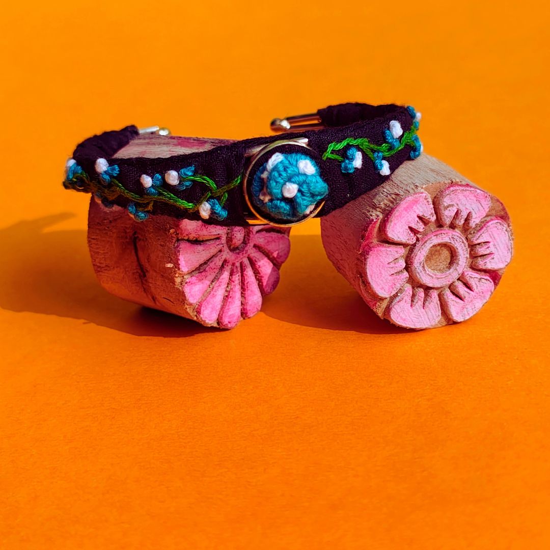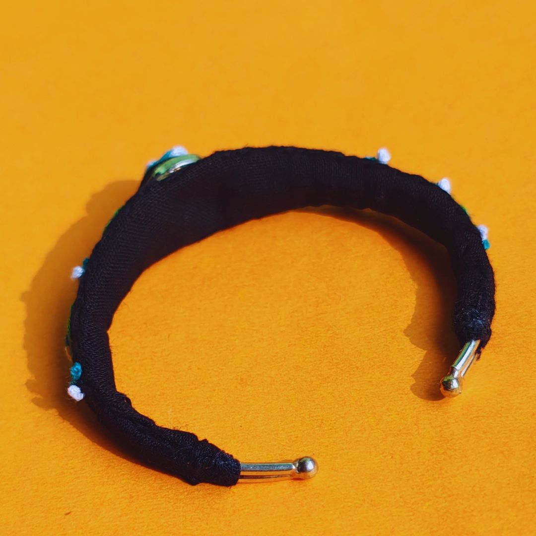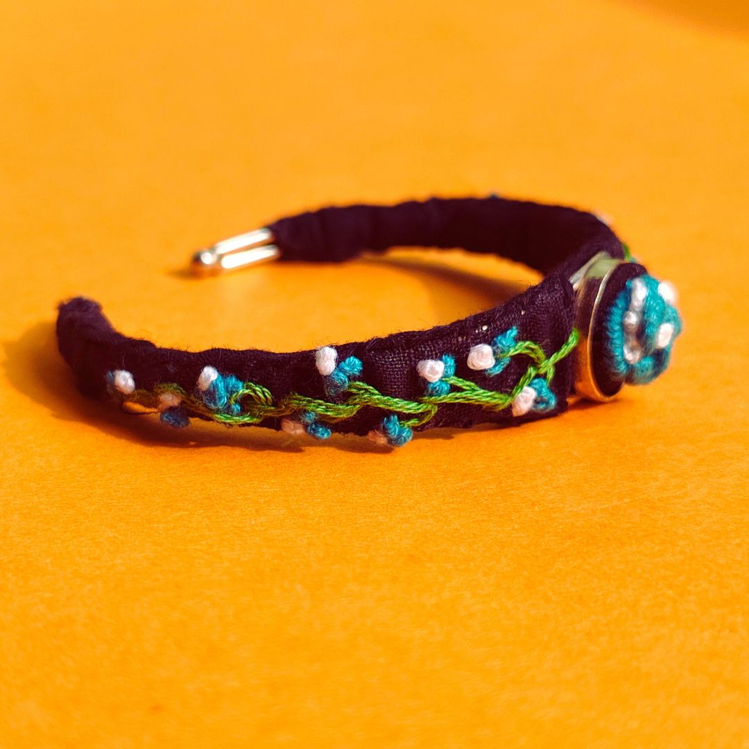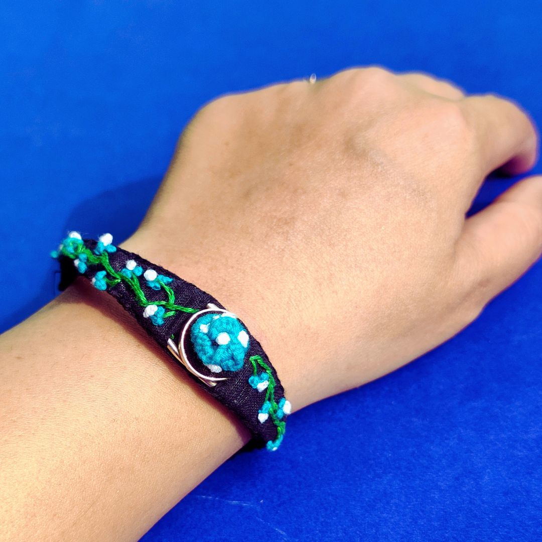 Introducing our elegant hand-embroidered adjustable bracelet. Crafted with love by our artisans, these bracelets are adorned with vibrant, hand-embroidered details. The intricate floral designs blend tradition with modern style, making them a perfect accessory for both casual and festive occasions.