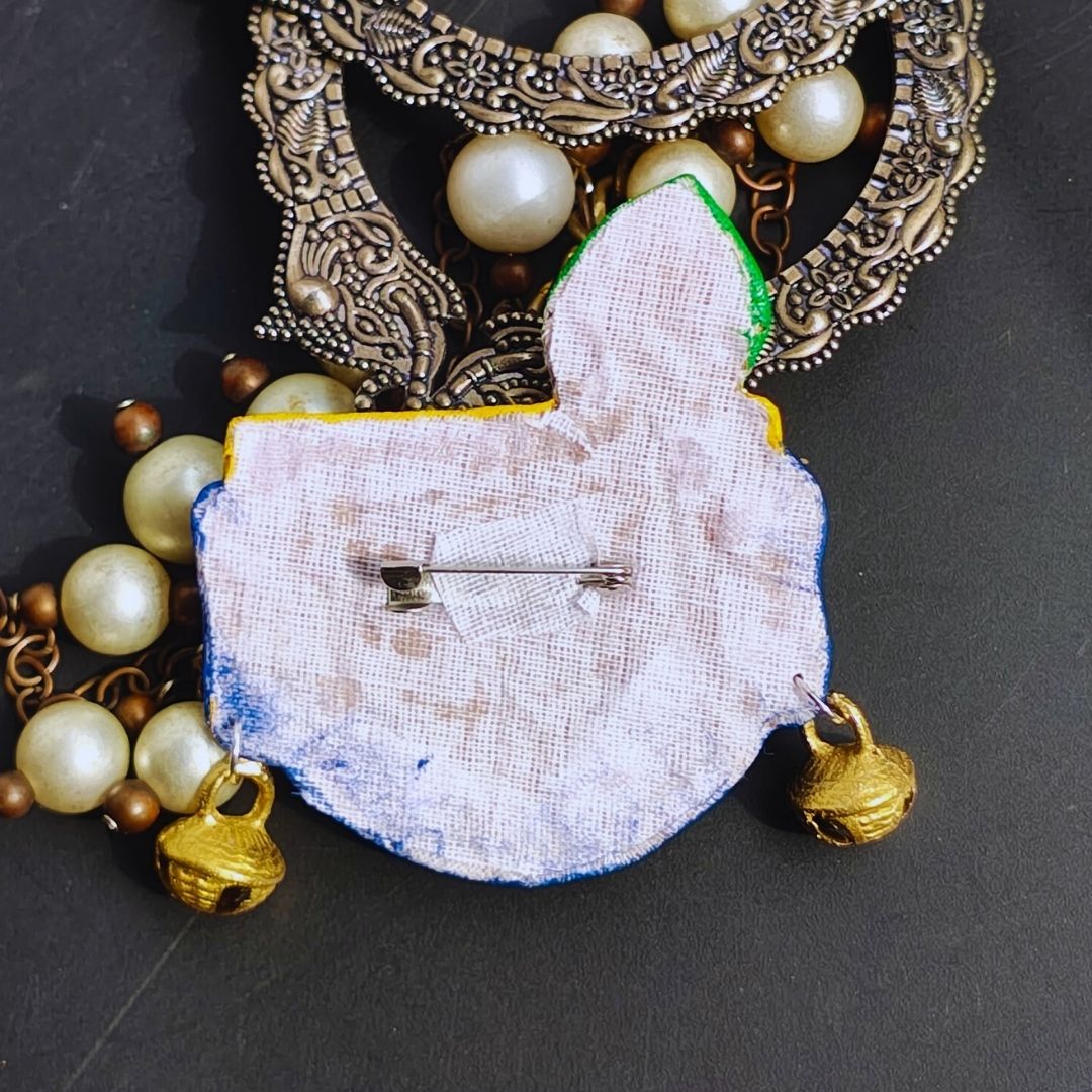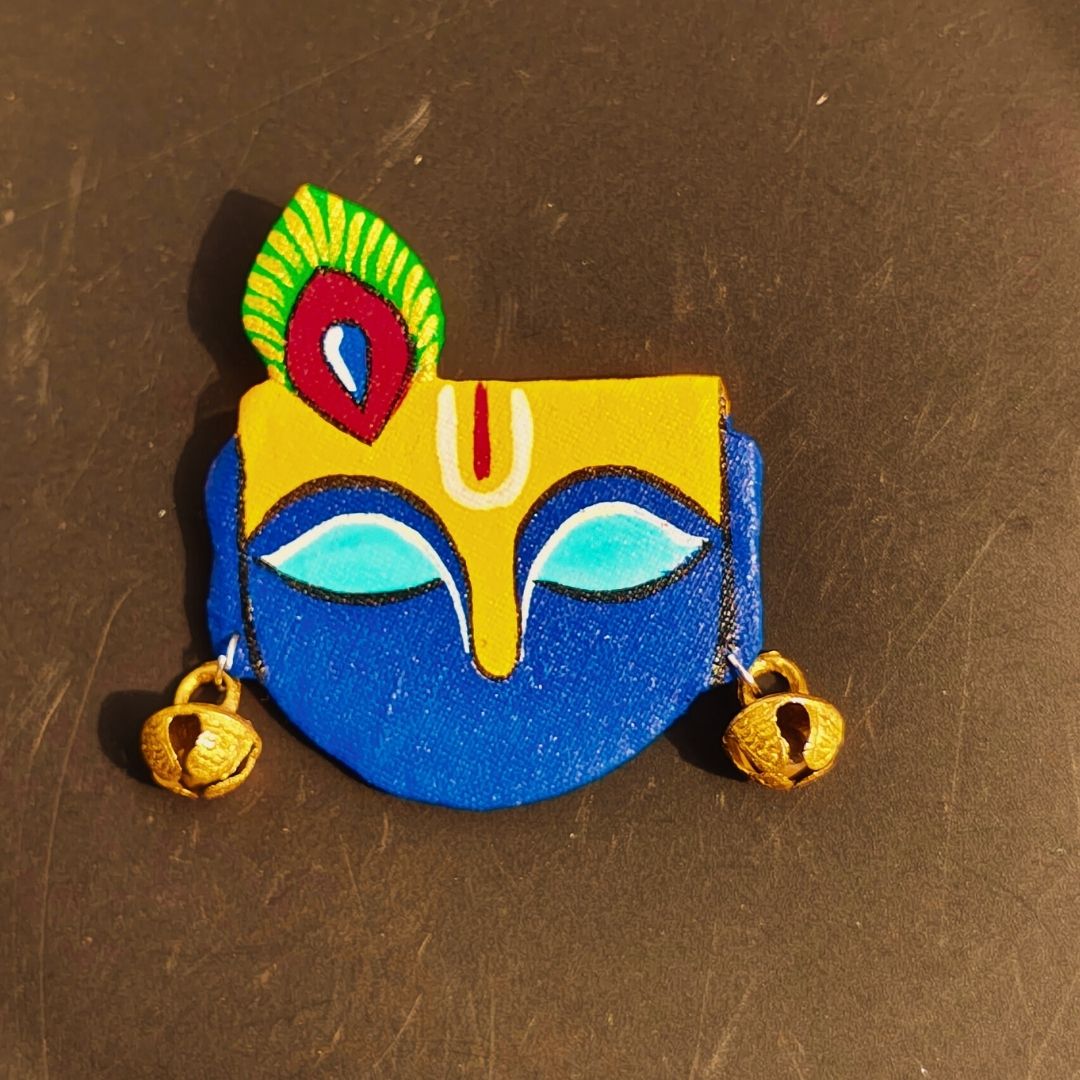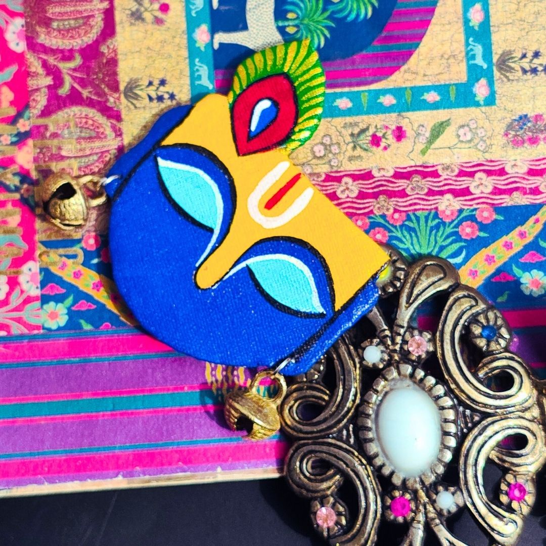 Inspired by the quiet strength and serenity of Krishna, this hand-painted brooch reflects peace, grace, and timeless beauty.