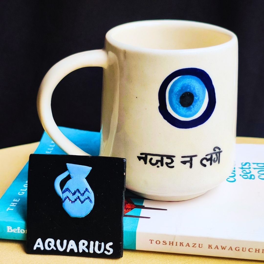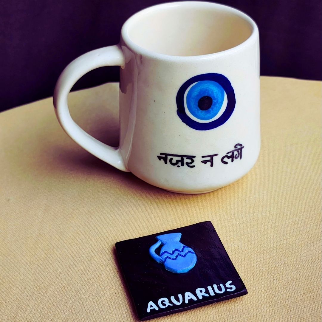 This quirky and stylish set includes a cute ceramic coffee mug and a handmade, handpainted zodiac magnet, perfect for showing off your one-of-a-kind personality. Designed for those who love standing out, this combo reflects the independent, creative, and slightly rebellious nature of Aquarius.